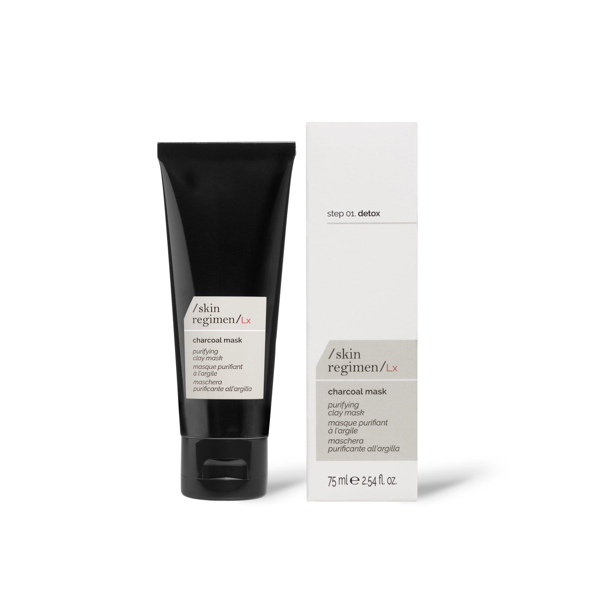 Indulge in the luxury of smoother, silkier skin with /skin regimen/Lx Charcoal mask. This purifying mask, enriched with black clay, bamboo charcoal and pomegranate seed powder, strengthened by our exclusive Longevity Complex™, exfoliates the skin, giving it a touch of silky radiance.